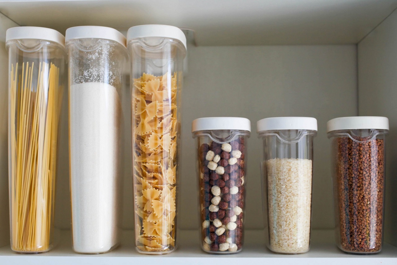 Alacena ordenada con contenedores transparentesAlacena ordenada con contenedores transparentes