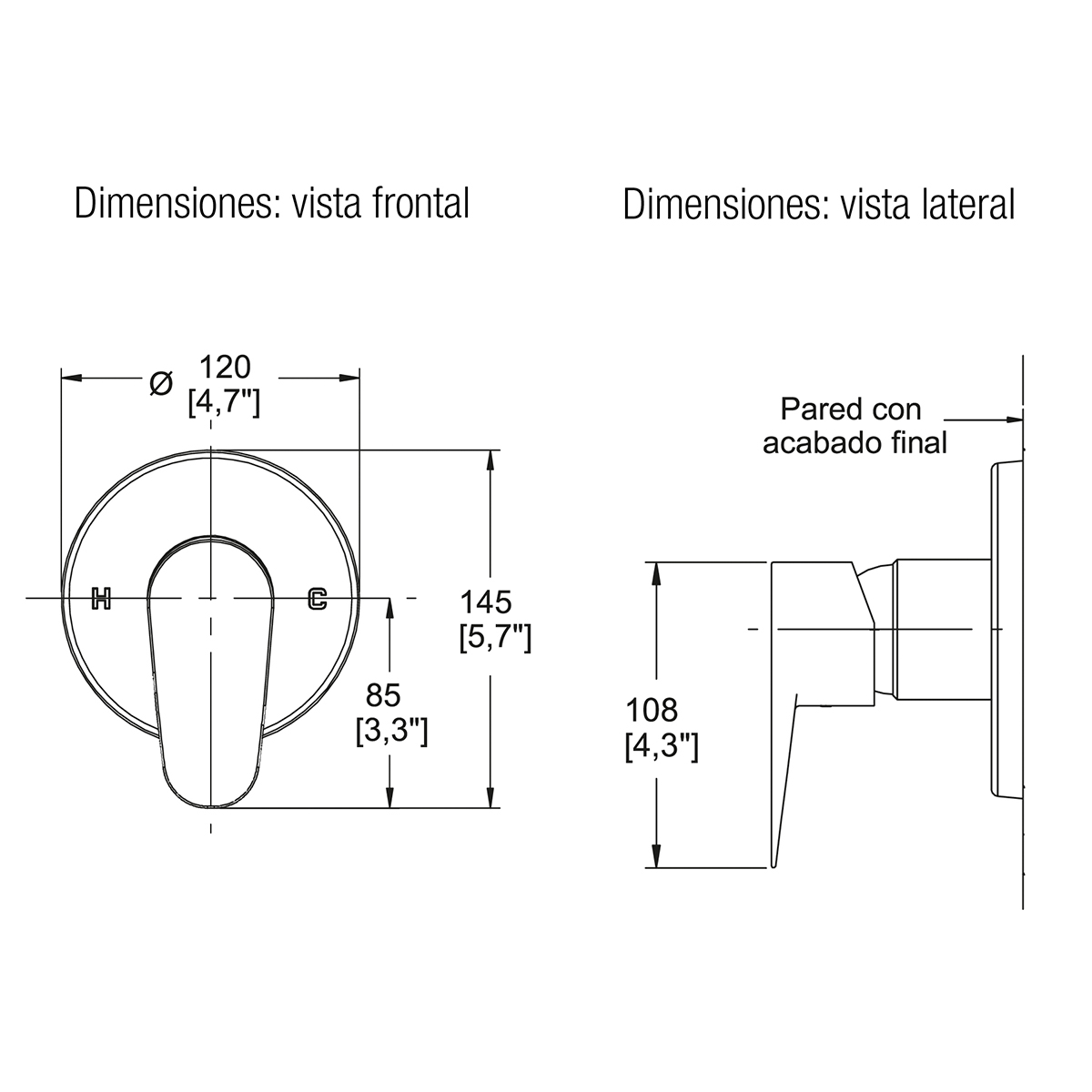 Monomando para regadera o tina sin desviador Century. Presión mínima requerida 0.80kg/cm2. Acabado Aura
