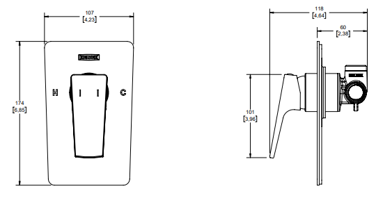 Monomando para regadera o tina sin desviador Spiga. Maneral marcado con indicador de temperatura fría o caliente. Presión mínima requerida de 0.80kg/cm2. Acabado Cromo